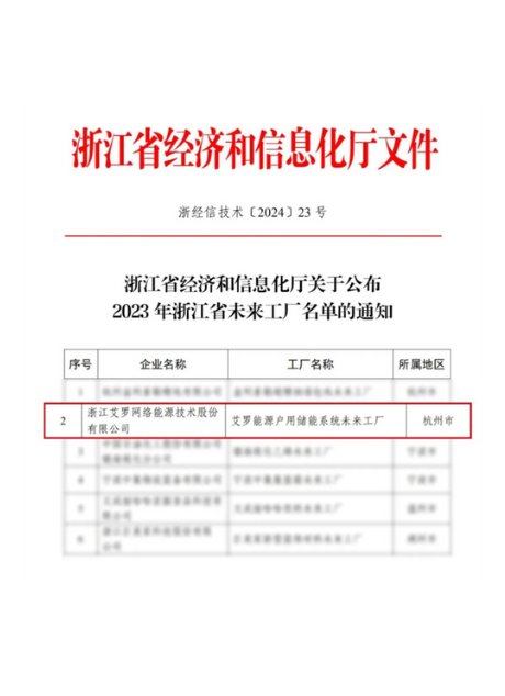 2024:“开云能源户用储能系统”上榜浙江省未来工厂
