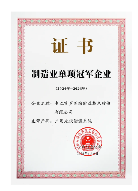 2024:“户用光伏储能系统”成功获评国内首台(套)装备